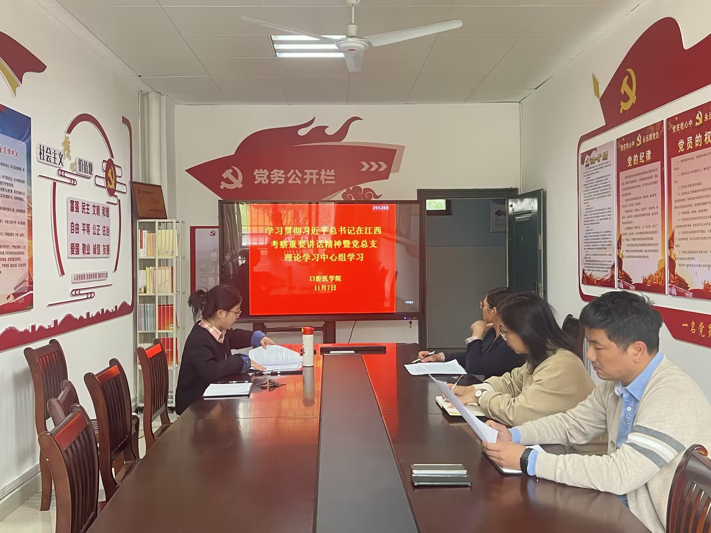 2023年11月7日,v站体育官网党总支理论学习中心组围绕习近平总书记在考察江西时的重要讲话开展学习研讨。v站体育官网党总支副书记罗志红主持会议并作总结发言,v站体育官网副院长胡征,理论学习中心组成员甘梅香、叶燕平出席会议并逐一发言。