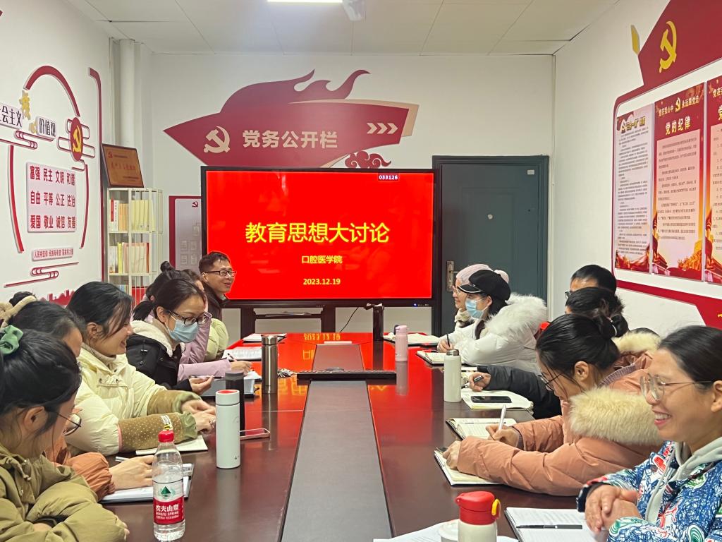 为深入学习贯彻习近平总书记考察江西重要讲话精神,深入学习贯彻习近平总书记关于教育的重要论述,落实立德树人根本任务,深入推进教育教学改革,进一步提高人才培养质量,根据《v站体育官网“教育思想大讨论”活动工作方案》文件要求,12月19日下午,口腔医学院组织开展“教育思想大讨论”活动,全体教职工参加会议。