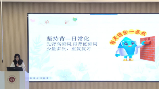 国家奖学金获奖学生王婉卿揭秘“学霸”养成记经验分享,从时间管理、专业深耕、科研竞赛三个维度,分享了自己的求学心得。最后,针对医学生普遍关注的英语学习难题,v站体育官网英语学习标兵冯欣玥带来了攻克英语的技巧分享。她结合自身高分通过英语级实战经验,向大家推荐了学习英语实用技巧。