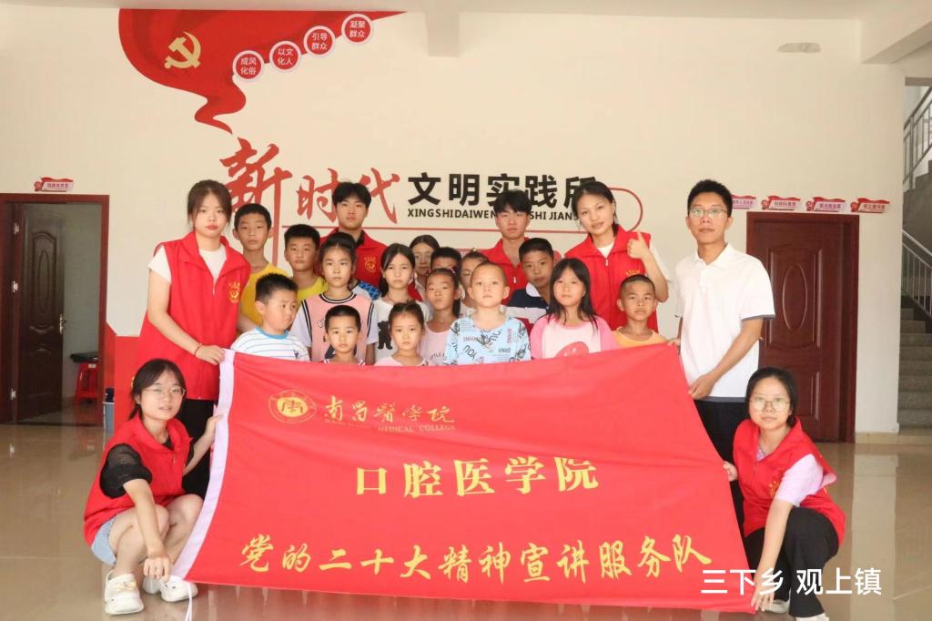 呵护童心,筑梦未来。7月10日,v站体育官网“三下乡”队伍前往樟树市观上镇新时代文明实践所开展童心港湾志愿活动。在注重课余兴趣课程的同时,我们也将专业的口腔健康知识带给孩子们,让更多的儿童意识到口腔健康保护的重要性。