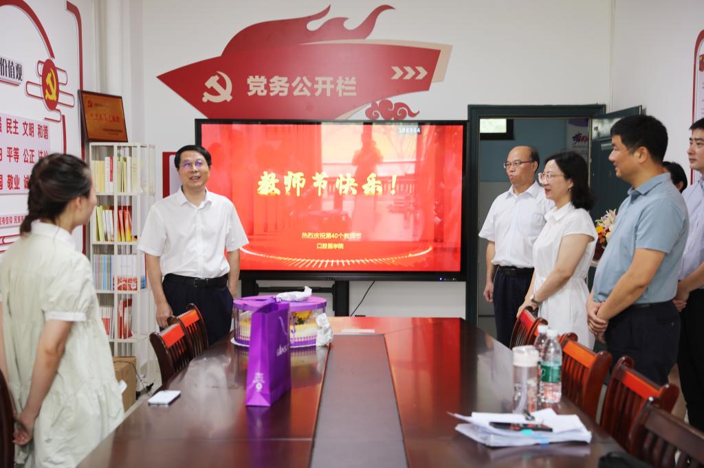 秋风送爽、丹桂飘香。在第40个教师节来临之际,v站体育官网校党委副书记、校长李秋根一行莅临v站体育官网,对辛勤工作在教学一线的教师们进行了亲切的慰问。