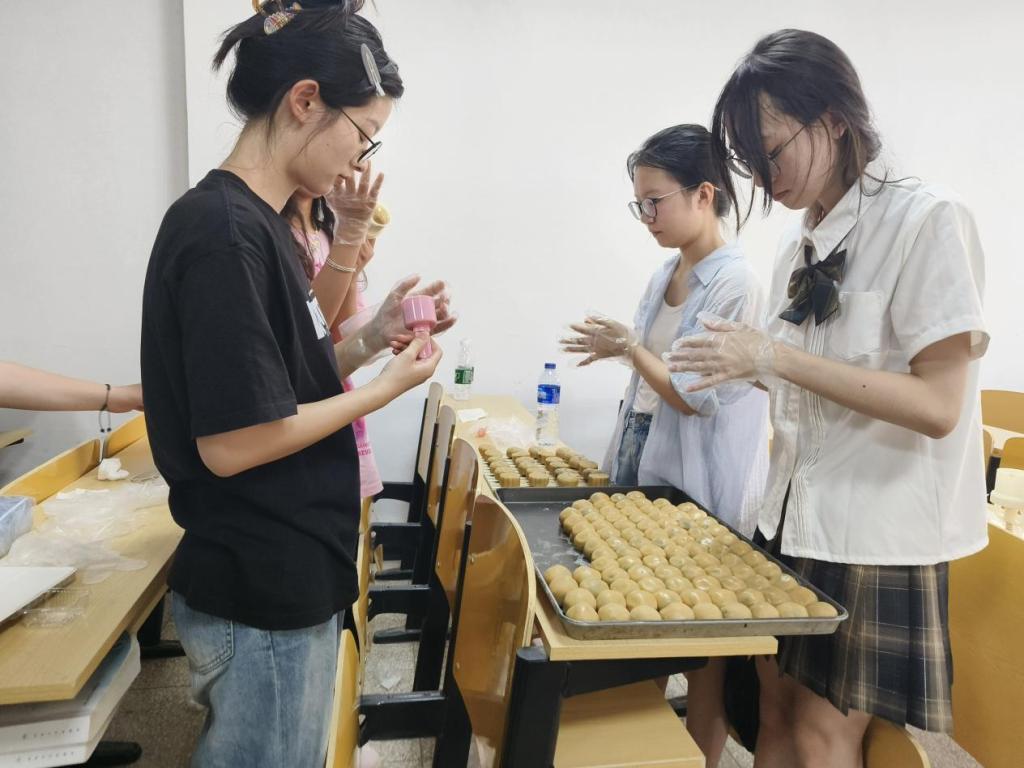 学院专职辅导员陈明晖详细介绍制作月饼的各个环节,并进行了现场示范。同学们在制作过程中相互交流技巧、分享经验,尽情享受制作的乐趣与成就感,深深地体验传统手工艺的独特魅力。