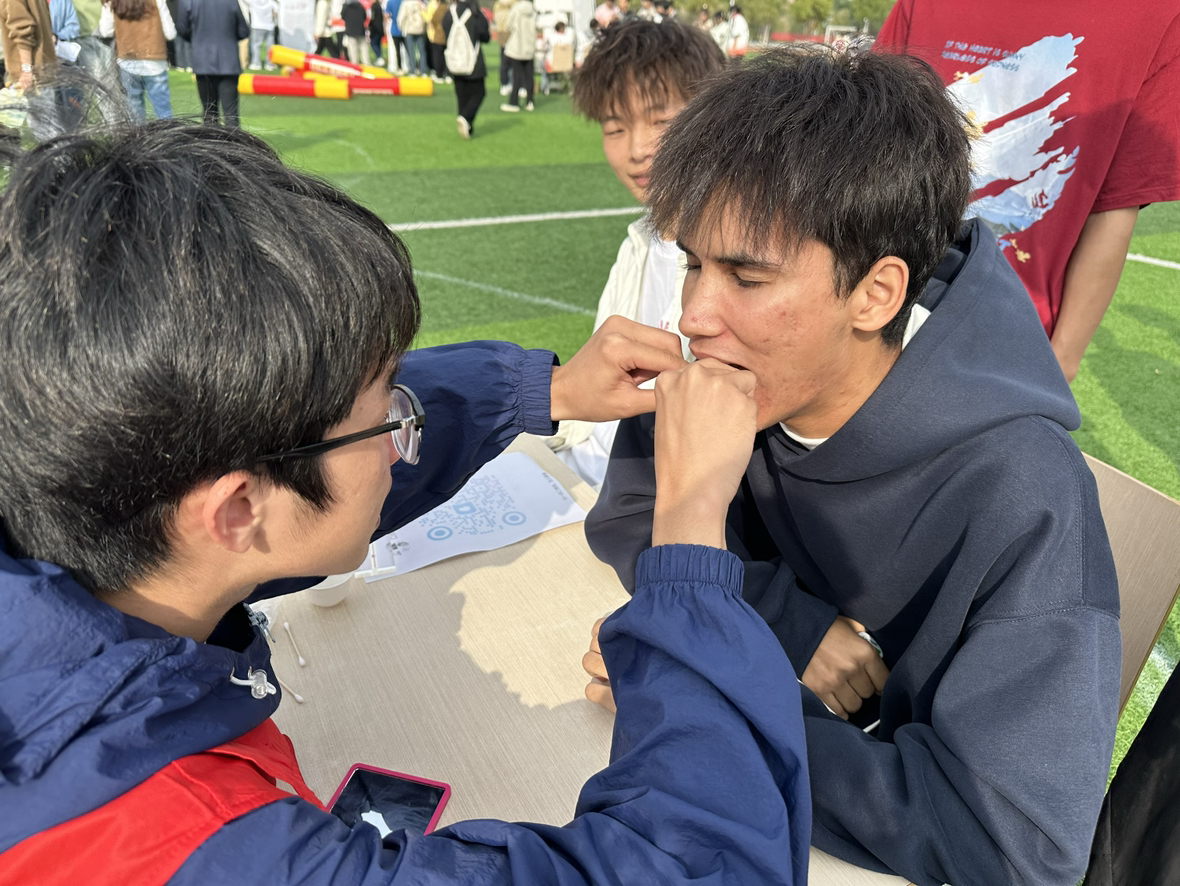 活动现场,同学们一边了解v站体育官网一院一品品牌成果一边参与现场游戏。口腔义诊区手工蛋挞香气诱人,志愿者免费为同学们做口腔检查;口腔知识问答区设置互动答题游戏,引导同学们关注口腔健康;品茶区茶香袅袅,大家共同品味茶香、慢饮细酌,以茶为媒,以茶会友;漆扇DIY区当扇面和大漆相遇,随即漂染出独一无二的扇面,或清新淡雅,或明艳绚丽,尽显水墨之美。活动现场热闹非凡,吸引了众多师生的驻足观看、热情参与。