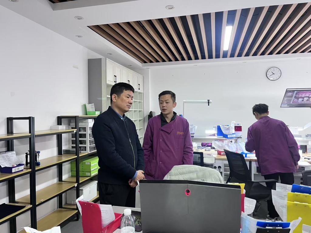 访企拓岗一行人参观了两家企业现代化的生产车间,观看了义齿制作的全过程,包括质检、设计、制作等各环节。听取了公司在技术创新、市场拓展等方面的情况介绍。胡征对公司的创新能力和市场竞争力表示肯定,并希望双方能在实习实训、产学研合作等方面找到更多的契合点,实现互利共赢。