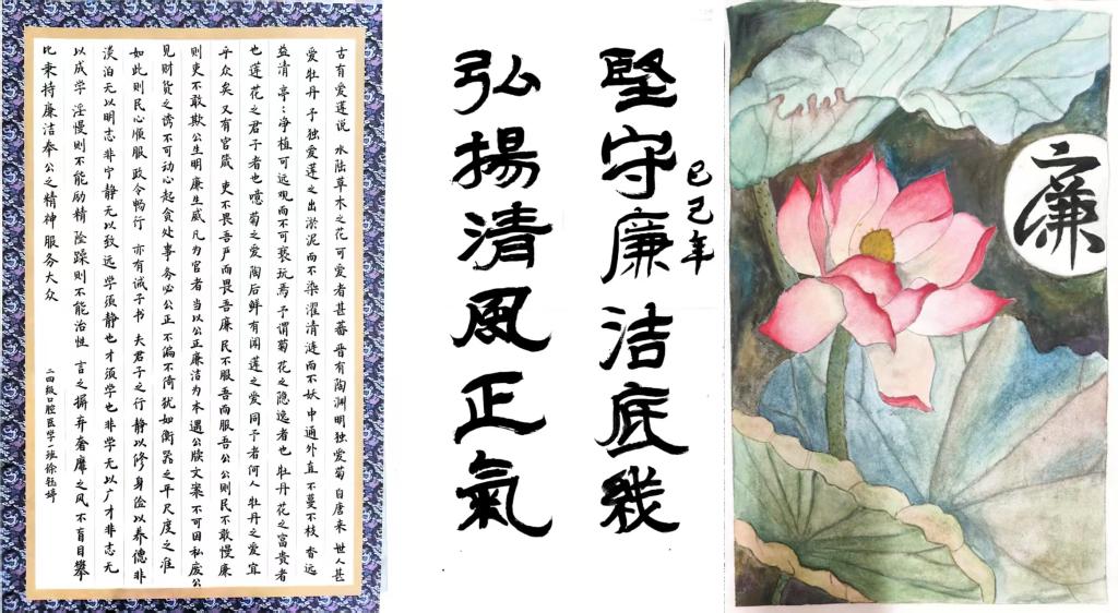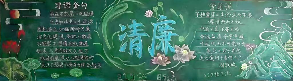 以廉洁文化为主题的黑板报展示,同学们充分发挥创意,将莲花等象征廉洁的元素巧妙融合,绘制出一幅幅主题鲜明的黑板报,生动诠释了廉洁文化的深刻内涵。主题班会活动中,各班结合廉洁文化相关内容,引导大家思考廉洁在个人成长和社会发展中的重要性,传递廉洁正能量。书画展中,同学们挥毫泼墨,将对廉洁的理解融入每一笔每一画中,也进一步提升了廉洁意识。