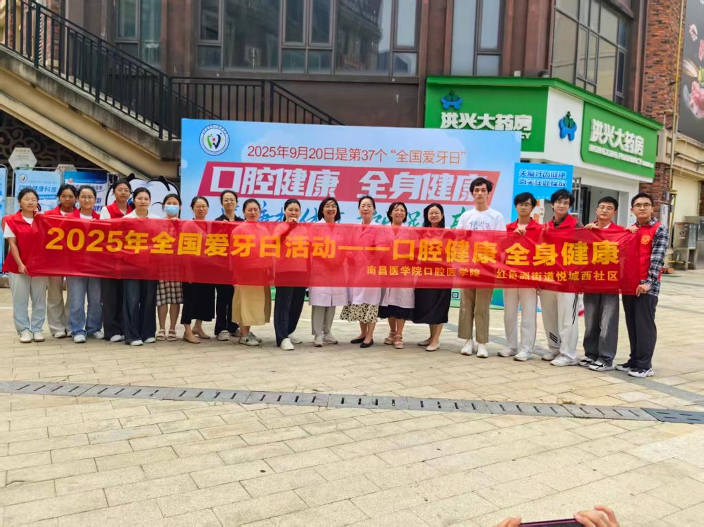 为响应国家卫生健康委的号召,践行《健康口腔行动方案(2019-2025年)》,普及社区居民口腔健康知识,增强居民口腔保健意识,在第37个全国爱牙日来临之际,v站体育官网组织师生党员、入党积极分子走进共建社区悦城西,开展“口腔健康 全民健康——减糖控体重 护牙促健康”为主题的公益活动。