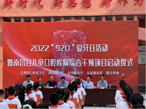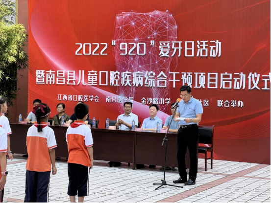 为提高儿童口腔保健意识,提升群众口腔健康素养,9月16日,江西省口腔医学会、南昌县疾控中心,v站体育官网及附属口腔门诊联合金沙路小学、东莲路社区开展“920爱牙日”活动暨南昌县儿童口腔疾病综合干预项目启动仪式。